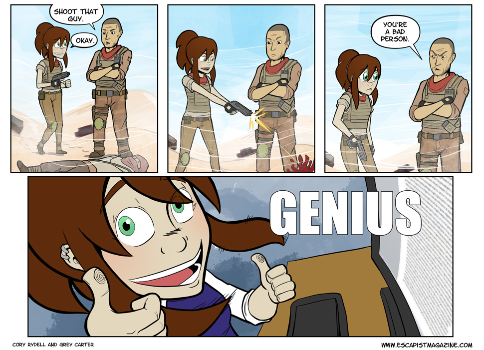 But buried amidst it all there still is a good point. Why bother making your character visually different from the norm if in the end they're still confined to a very narrow range of characterization? True, in a world without gender roles a lot of women probably would act just like your male hero, but there are still those who would continue to enjoy feminine things like cooking and fancy dresses, and still be just as capable of heroic things. Whether or not it's a "good" thing that they do, women exist who prefer more masculine or feminine things, and black people exist who are or aren't into "ghetto" culture. If you only write your heroes as if none of them do the latter ever, it's tantamount to saying that while Generic White Males aren't the only ones that matter, you still have to "become" one to.