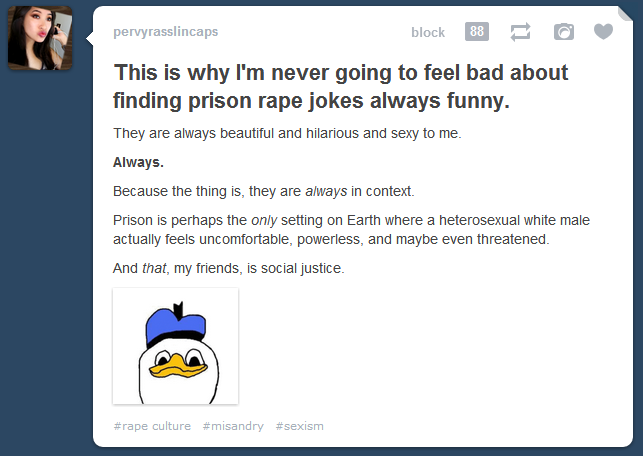 Oh noes! Evil Social Justice Warriyahs are trying to keep people from treating gender, racial, and sexual minorities like shit by changing culture into something less "friendly" to the majority! QUICK, TO THE MANMOBILE; WE'LL SET THEIR SHIT STRAIGHT.