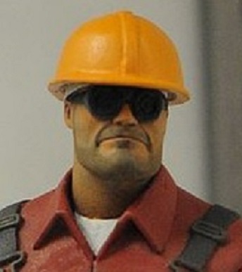 Worth noting that, besides wearing a hard hat, the Engineer here doesn't look anything like any of the TFC Engineer models. Probably because the Engineer update already used his character design for this guy who it probably TF2 Engineer's dad, while this is someone else.
