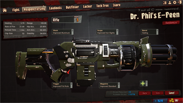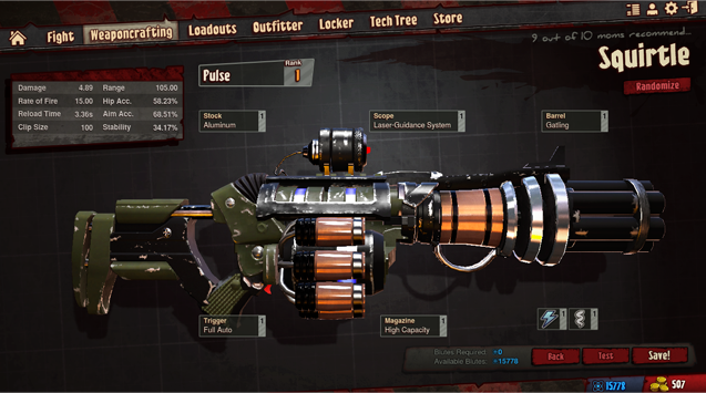 So yes you can build a rocket that lays down electric mines when you miss then explodes into a storm of electric flak or a gatling gun that shoots fire, or a gun that shoots bouncing heal orbs and lets you see through walls; but you're just not going to beat the default stuff for the most part as far as efficiency is concerned. (And please note that your weapons can and WILL hurt you so think twice before using ricocheting electric flak rounds in a closed space. Also stay away from the blatant shotgun barrels since shotguns are shit in this game.)