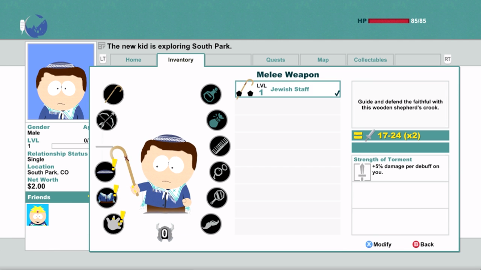 >>185583 The overall RPG looks to take from both modern and old-school features. Along with the critical path, it sounds like there will be a ton of side quests as the entirety of the town of South Park will be free to explore fairly early on along with a ton of collectables, equipment, and other secrets placed here and there. The battle system is turn-based with a timed-hits mechanic much akin to Super Mario RPG. There's also a fair bit of strategy placed in battling certain enemy placement and types that makes the battles much more engrossing rather than feel like a grind.