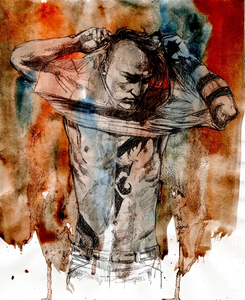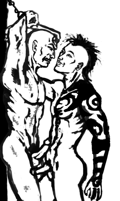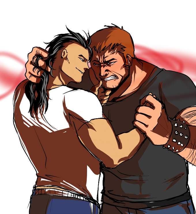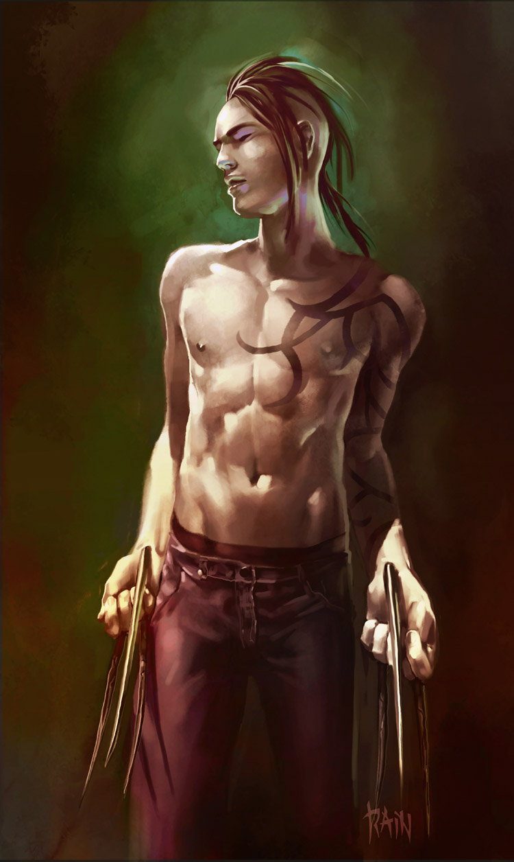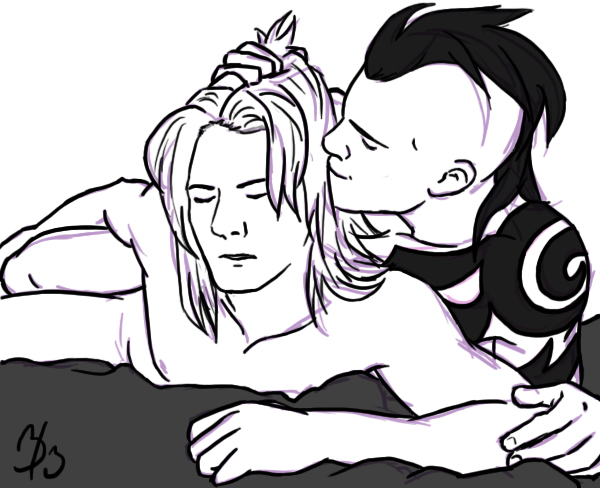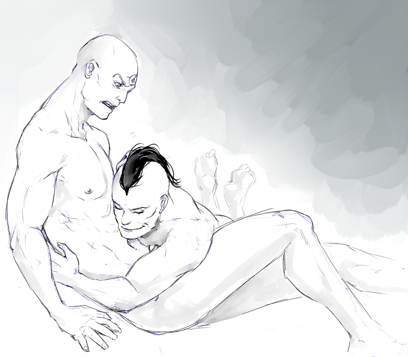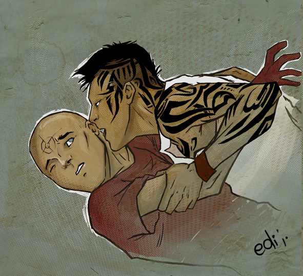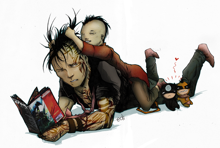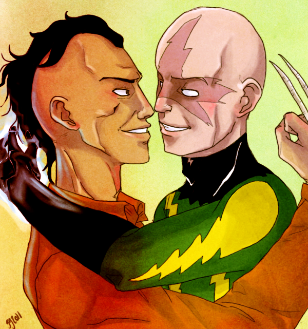 Daken started his day by answering his door and being pummeled to the ground by a seemingly irate Bullseye. Now whereas being assaulted by Bullseye wasn’t unexpected or all that unusual, the manner in which it was occurring was however very unusual. A forceful kiss surprised Daken enough to open his mouth and allow for Bullseye to force his tongue in. It wasn’t at all how he had expected to start his day, not that he was complaining, merely that he was somewhat bemused by the whole affair.