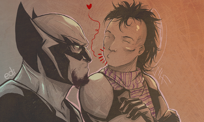 “Sweetness, with behavior like this I won’t be able to resist,” Daken cooed into his ear, planting kisses along Bullseye’s jaw to the corner of his mouth.