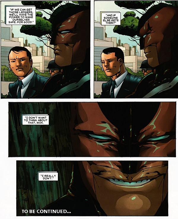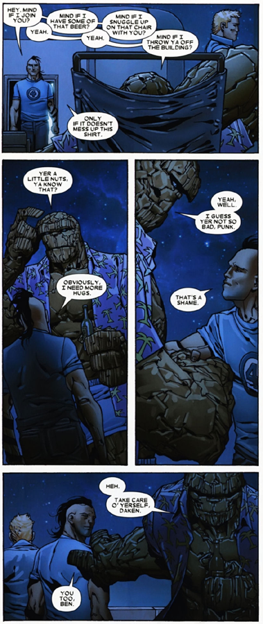 Daken winced at the sight and sound of it and concluded that the entire affair had to be the work of either faulty medication or some kind of mind control - as was to be expected in their line of business. It was a bother that it had to happen before breakfast and in his personal quarters. Had Bullseye made a fool of himself in public there would have been some benefits. Well, he could always harass Lester about this after the whole thing was sorted out.