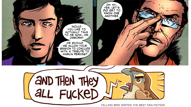 “You’ve found him,” Daken replied, kissing Lester and then biting him gently on the ear. “All in one piece. What’s it to Norman?”