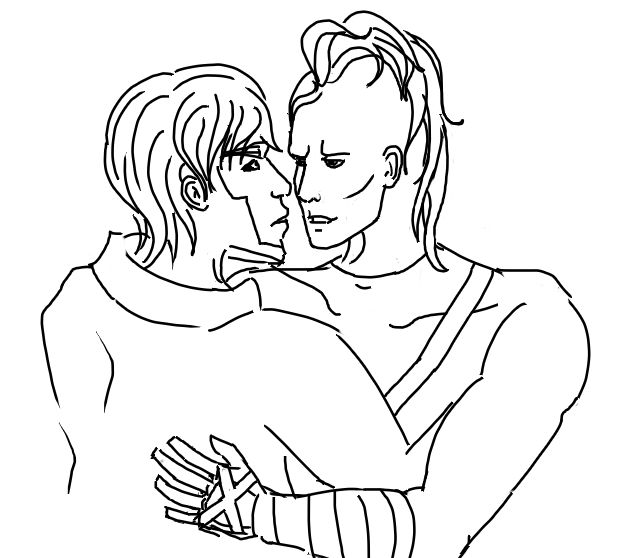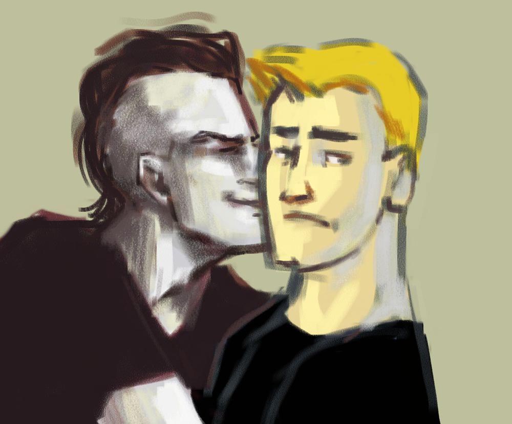 “Hmm, yes. I’ll take care of that,” Daken responded absentmindedly, caressing Bullseye’s face, who leaned into his touch. “You go along and tell Norman all is in hand, yes?”