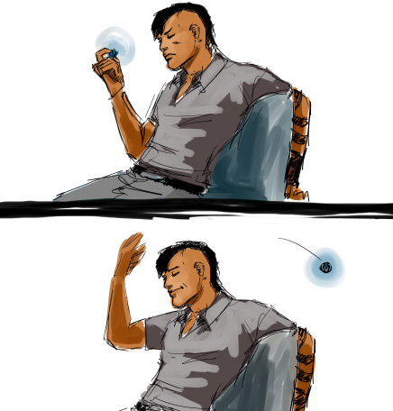 “Ground control to Bullseye,” Daken snapped at him, sending a wave of pheromones to incite fear, but it didn’t quite have the intended effect. On the bright side, Bullseye stopped sexually assaulting him. On the other hand, he affected the look of a kicked dog and whimpered - actually whimpered - in a pitiful manner.