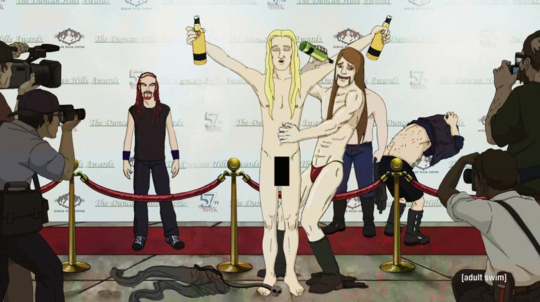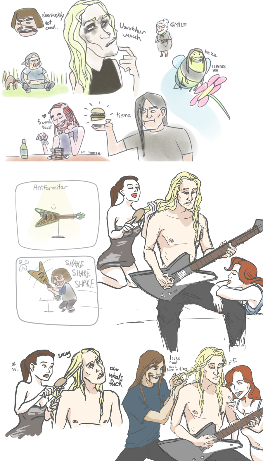 Several episodes into Season 4, and there's nothing really new here? Nothing about Friender Bender, and how it is just BEGGING for Pickles/Nathan slash? Nothing about Murderface waxing poetic about masturbating and kinda getting up on Skwisgaar whilst doing it? No gif where all five guys are jerking off?