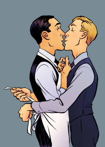 It's Jeeves/Bertie, but they're pulled forward in time, where there end up living with a hippie chick in Seattle.