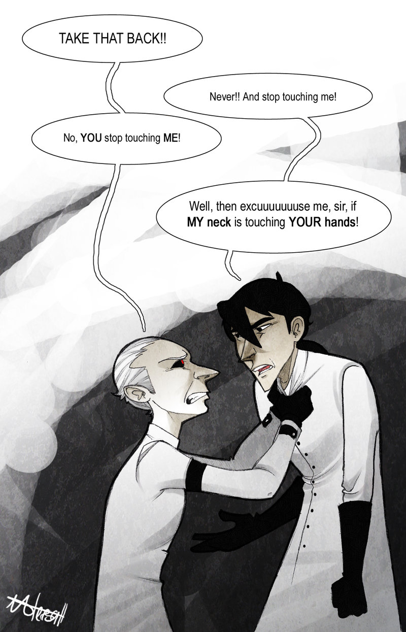 Schtein sees it, and he is scared. And in his fear, he is slow; Krow, MacManus’ small, hunched supporter, gets to him before he can so much as roll over, and Schtein quickly finds himself once again held down by MacManus’ men. The back of his head is wet against the pipe he is forced against, and he is aware—too aware—of the sensation of hands gripping his wrist, his chest, his /face/—every nerve on fire. He wants, more than anything at this moment, to crawl out of his skin and burn himself clean, but the press of thumbs on his wrist remind him, firmly and insistently, that he is very much set to stay.