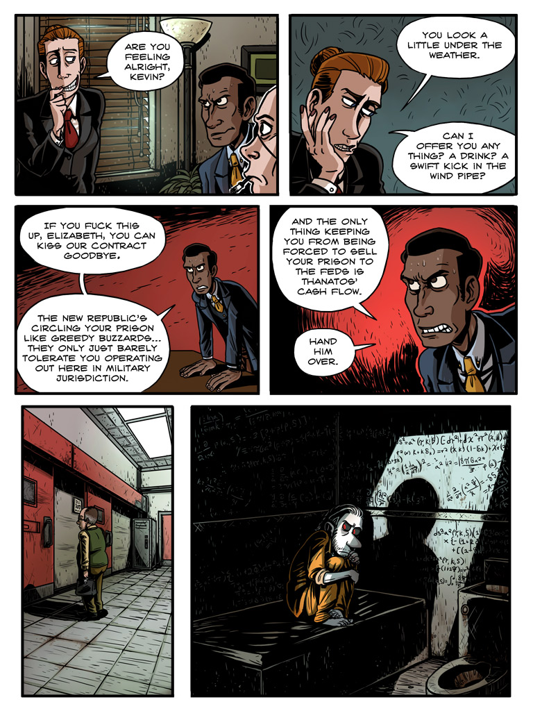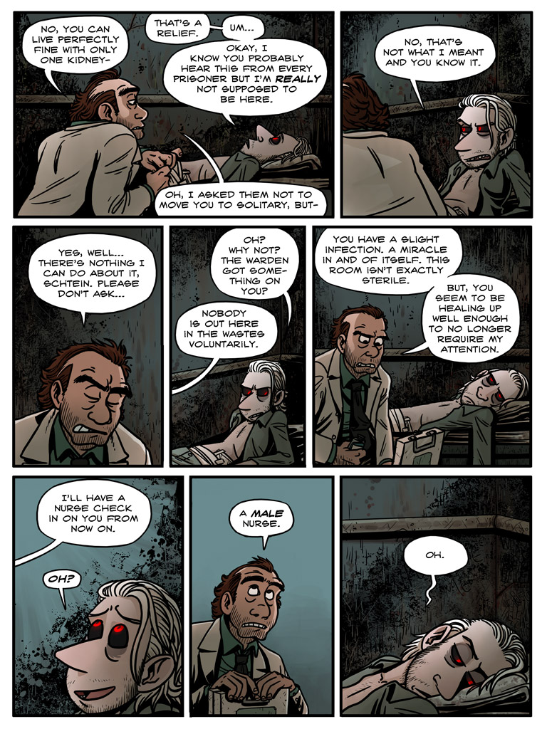 “Calm down, Doc, no need to get yourself all worked up. It’ll all be over soon, and we can go back to being /friends/.” Laughter echoes in the room and Schtein feels sick. This has all become too real.