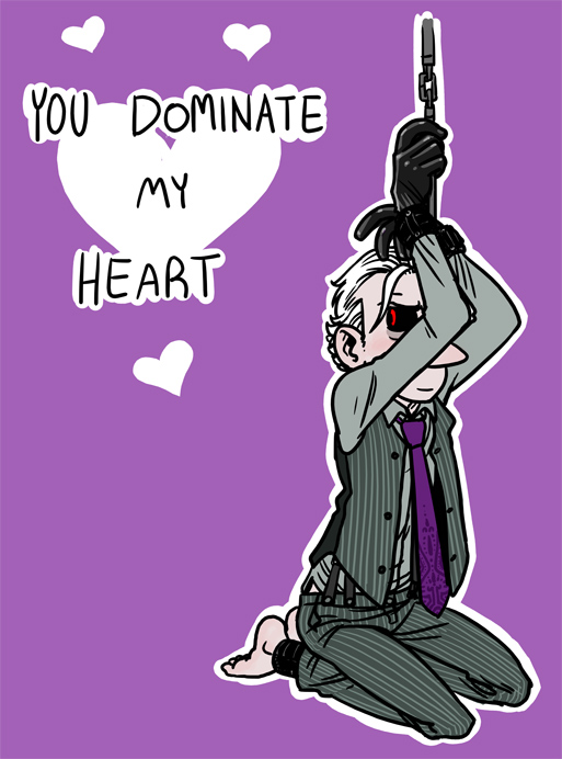 “Finish what you started, boy.” MacManus smashes his head into his crotch, and Schtein scrambles to comply. Wills himself not to flinch when he feels someone lean in against the curve of his ass, folding themselves over his naked, ugly form. He feels a finger slip in, quick and wet, and he spasms slightly.