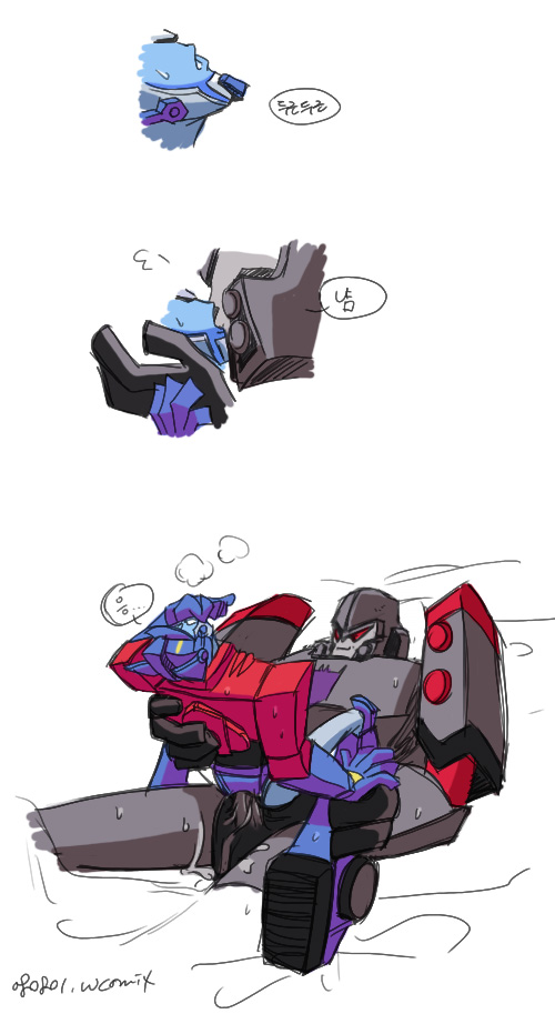 >>77723Happy Ending (http://newvagabond.tumblr.com/post/36754038660/happy-ending-transformers-prime) Starscream/Vehicon (Steve?!) Tactile, non-sticky, no robodicks, you know the drill. Got this idea after I got a massage. XD; Pre-Knock Out. Good Boy (http://newvagabond.tumblr.com/post/38321767252/good-boy-transformers-prime) Starscream/Vehicon. Sequel to Happy Ending. Tactile, plug ‘n play, non-sticky. Starscream is a cougar and that’s all I have to say.