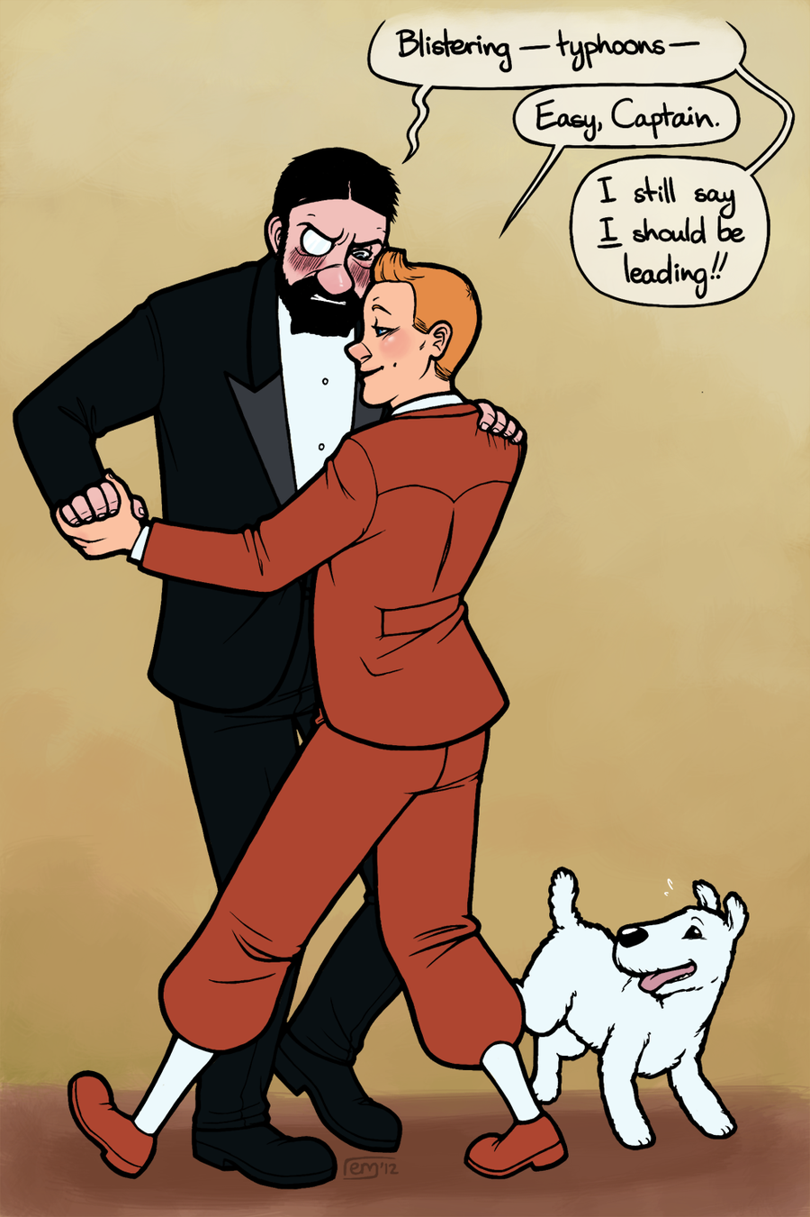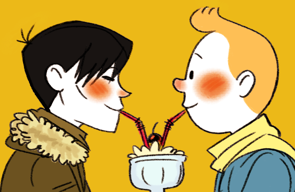 'Wait, what?' the young reporter thought, deliberately looking away from his friend...then down at himself. His usual morning arousal had waned when he'd heard the shouting, but was back full force again. 'But why? The Captain is a friend.' Tintin looked up at Haddock again, and felt his arousal twitch. 'No no no no no, it's the Captain, he's your friend, stop staring stop starting stop-'