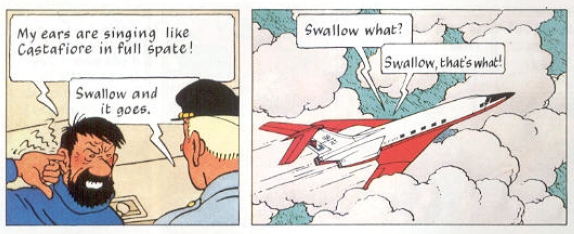 "So you're no longer 'slightly deaf in one ear'?" Haddock looked at Calculus, then to Tintin. "Covered your mouth so he couldn't read your lips, spoke softly, and now he can hear just fine on a quarter dose. Thundering typhoons, I took a whole dose, no wonder I look like this."