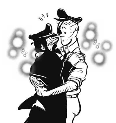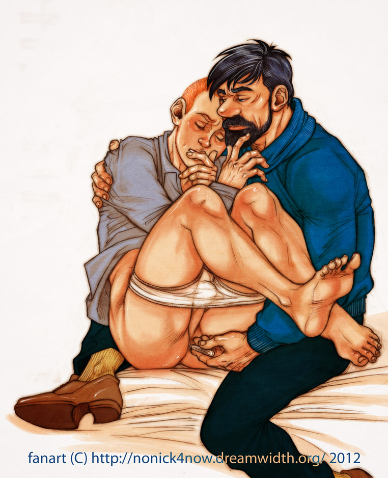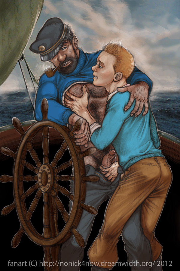 "He may have a fit when he sees you," Tintin couldn't help it, he snickered. "I'm going to get dressed. If Nestor faints, I'll cook breakfast in his stead." Tintin closed the door and leaned against it, sighing. He'd thankfully only been visible from about the waist up because of the door. His stupid, stupid morning erection was still there and calling for attention. 'You are going to get me in trouble if you keep getting up over the Captain,' Tintin thought sternly as he stripped down and walked to his bathroom to conduct his morning ablutions. His cock did nothing but bob against his stomach, waiting for attention, which he finally gave after a moment, wanking quickly and steadfastly trying to ignore the fact that every time he closed his eyes, Haddock's youthful frame popped up to assault his senses. Cleaning up after finding his release and dressing, Tintin made his way to the dining room, finding Calculus and Haddock sitting there, and Haddock was blushing.