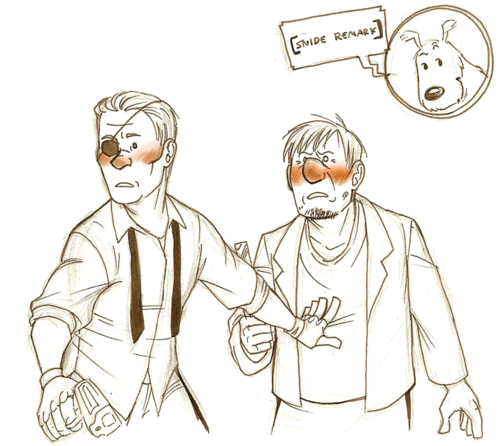"Hmmm, something to consider," Calculus nodded. Tintin had to stifle a chuckle as Haddock winked at him again.