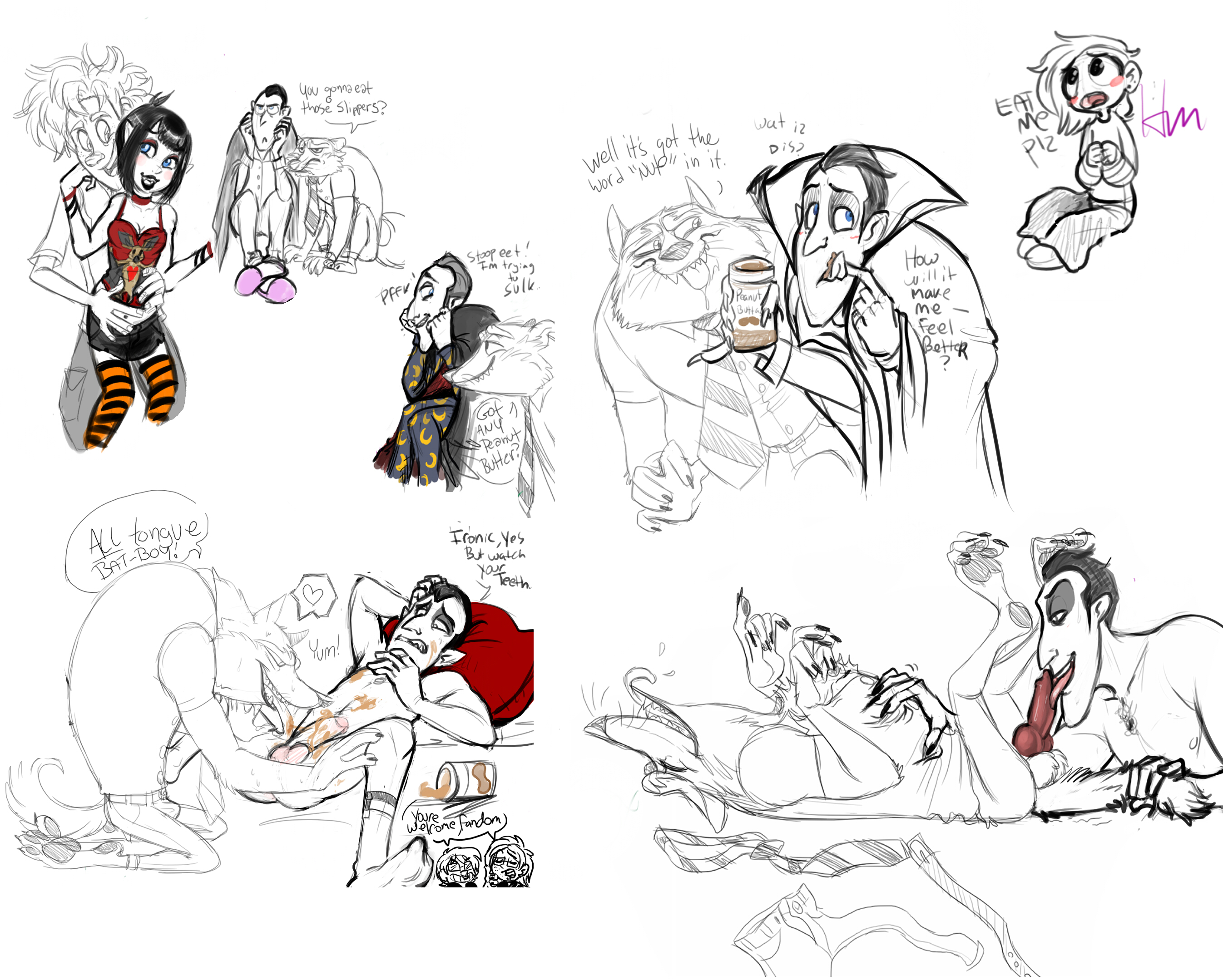Mavis laughed and went on. True that she missed a good old rotting puss sandwich from time to time, but Johnny had opened her up to a whole new world of food. Food that was fresh and if it was supposed to dead, stayed dead, like all the fish she tired in St. Petersburg. Dracula figured it was alright for Mavis to have a healthy balance d diet of both human and monster food at her age. Dracula was too into his habits to switch over now. Even more so right now as he snapped out his bat fangs and caught a mouth. He bit off the head, swallowed it hole and offered the squirming body to his daughter. She shook her head and went back to her tales.