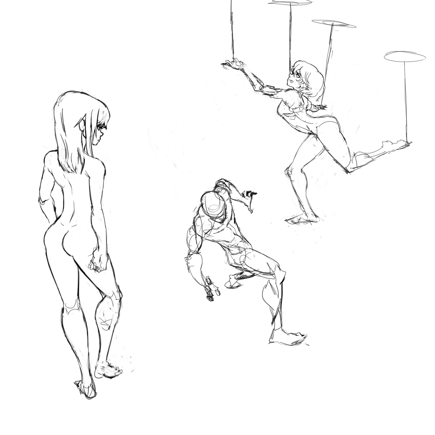 Very nice, I love the way you construct your figures (up there with Idecil, both of you have very distinctive personal style.), this picture is a little big to be inspected conveniently though. :p Love the unusual balance poses. Are you using references?