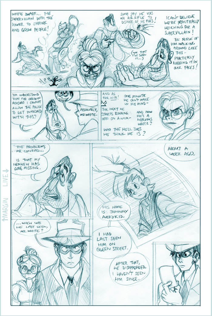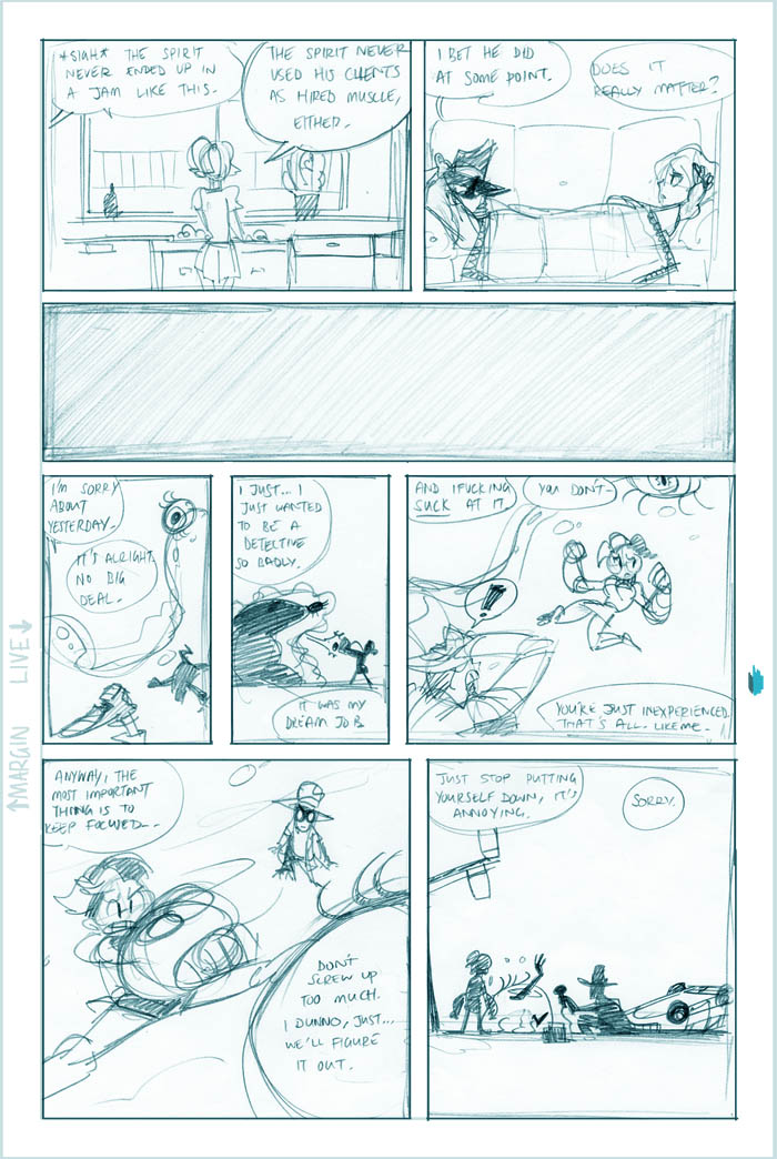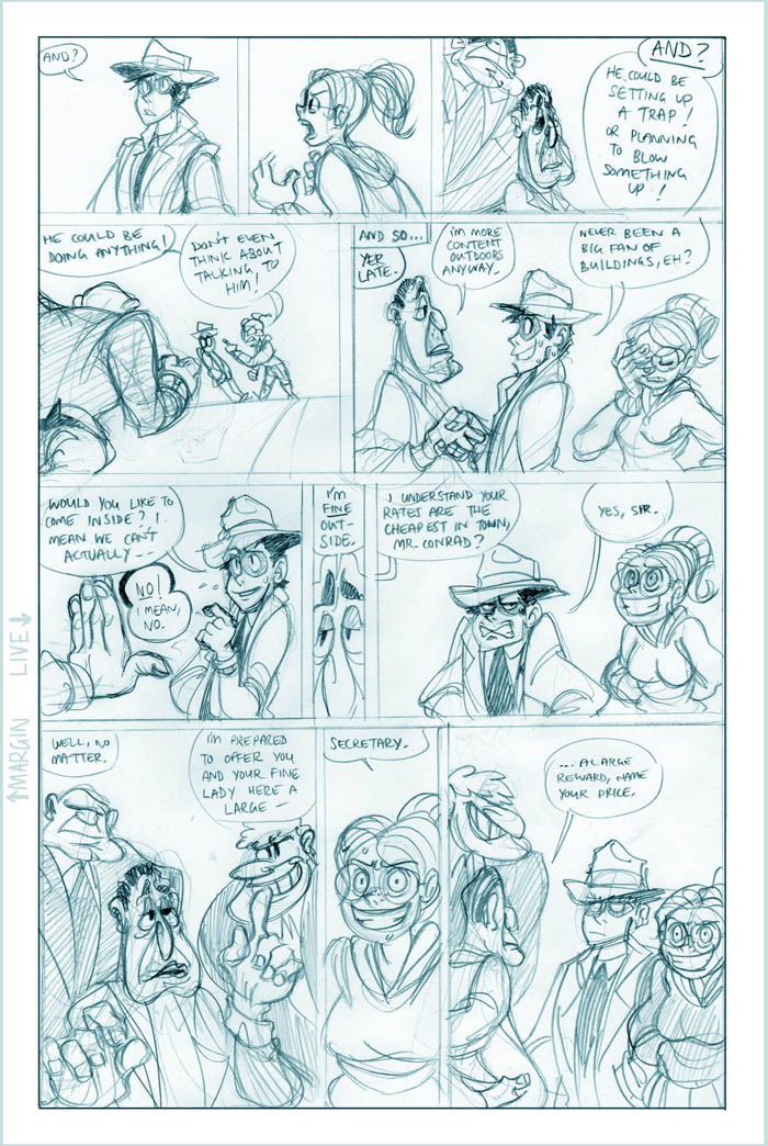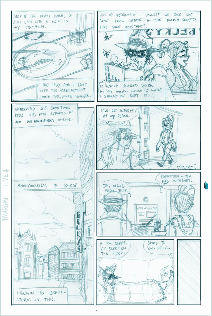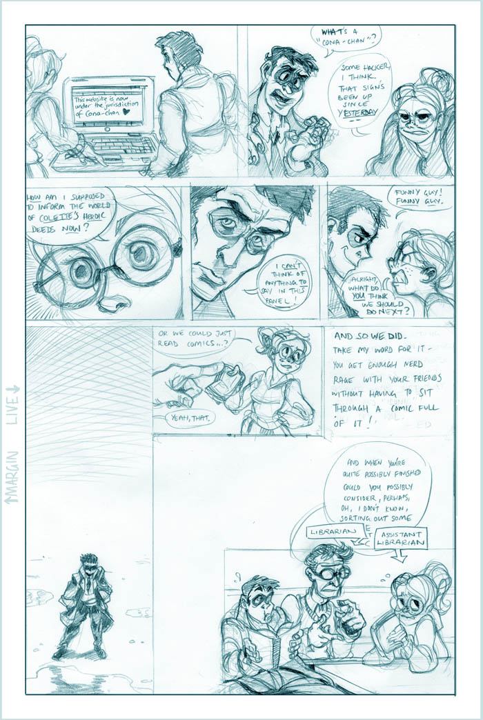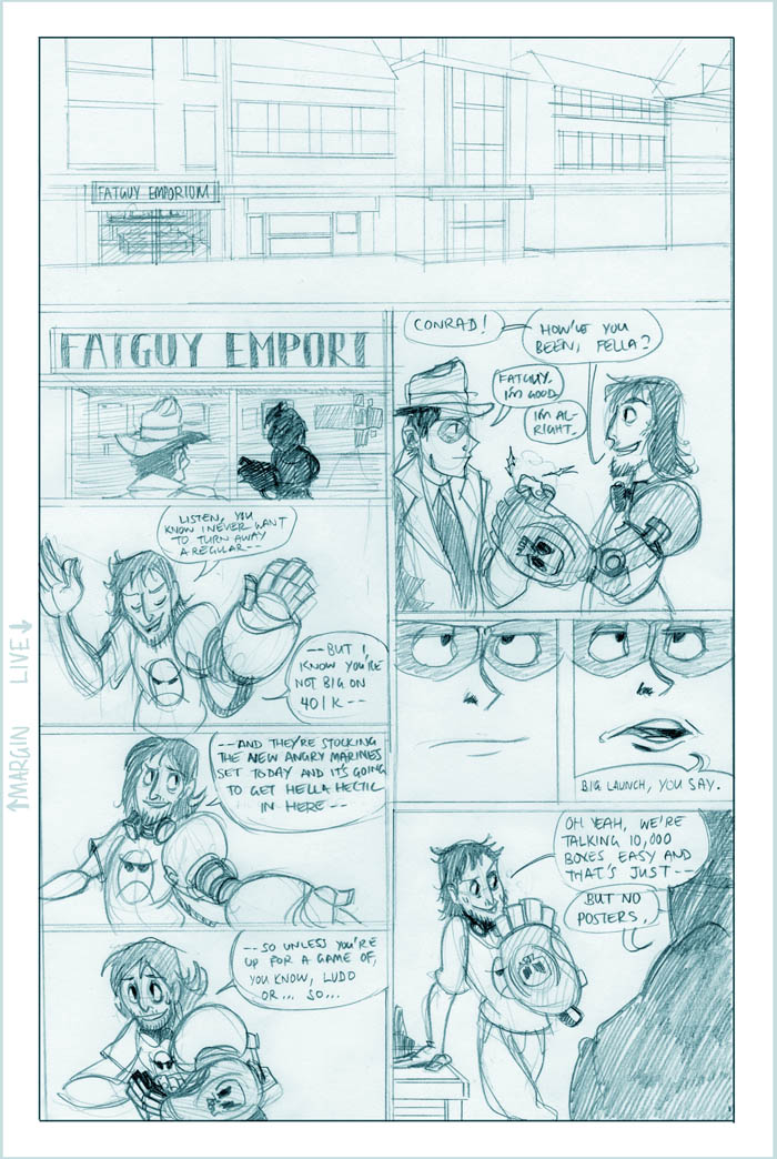 Ahh, we see it now - Roxanne's a little off the deep end. She's a sweet girl, though, and we'll see more of her eventually (I hear the Fatguy finds her creativity riveting!). Meanwhile Conrad, the man who just can't seem to concentrate, seems to be offering Colette a choice - either he can work on her case and presumably remain flat-broke for however long it takes, or he can take the rich job and leave Colette in the dust. He's not saying anything like "oh hey maybe we can do this now and this later", it's just X or Y. Colette's just thinking What The Hell, Conrad.