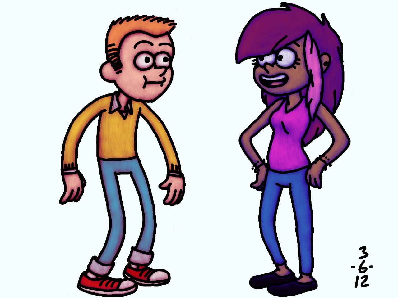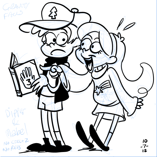 Pine twins again - quick sketch from memory, no refs, no erasing, no Undo. I rely on Ctrl+Z too much, need to ease off it.