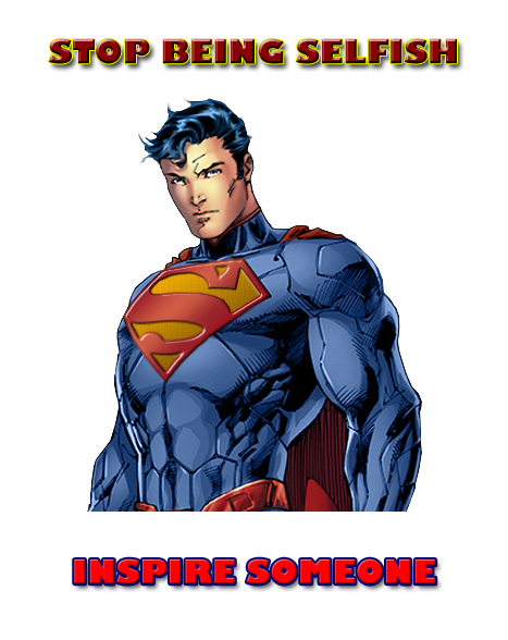 Can we get a picture like the one you've drawn for Batman? But for Superman? Instead it would say stop being selfish and Inspire someone or something along those lines.
