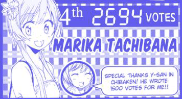 So I guess that means Chitoge might possibly have been first place if they only counted number of people voting, not number of votes, seeing as she has no backer.
