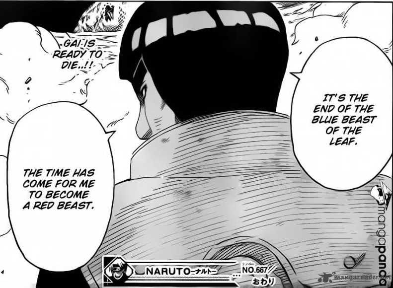 I've actually been wondering. When is it going to be Lee's time to shine? Literally every major character has exceeded their "sensei" in terms of power. With that, Lee might be able to exceed Gai's strength when he opened the Eighth Gate, without doing it himself.
