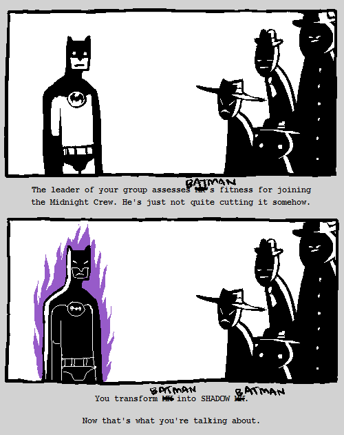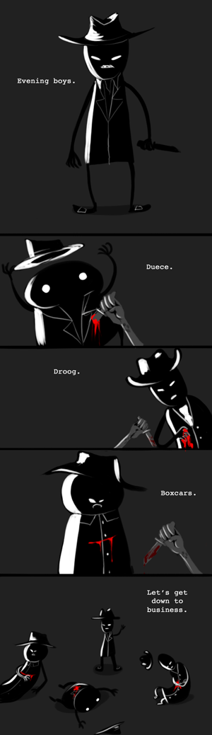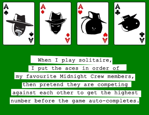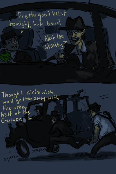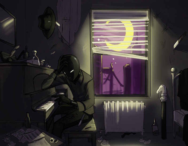 Spades ain't the instrospective type, at least that's what he tells everyone who has, for some reason, the inclination to ask. The past was shit, and the present, lost amongst capers and murders and jazz clubs and everything else, don't leave much time to sit around and think about bull-fuck that doesn't matter anyway. He made this goddamn town, the fuck is there to think about anyway? Though he may admit to himself that sometimes in the middle of the night when the rest of the crew are off or asleep and their capers and "everything else" are done, he might sit around with nothing to do but plunk at a piano that he still has for some reason. And maybe sometimes the music reminds him of somethin, and sometimes he lets that happen. Sometimes he even thinks about it. But that's just three-in-the-morning. Nothin more to it.