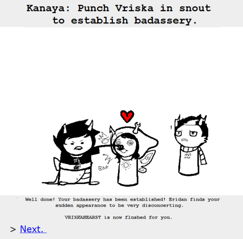 >>53510Yeah not only was that hilarious, but the best part of all was that all kanaya had to do to win her over was kill eridan, kick gamzee in the incipispheres, and clock vriska in the face.Really not too big of a deal.