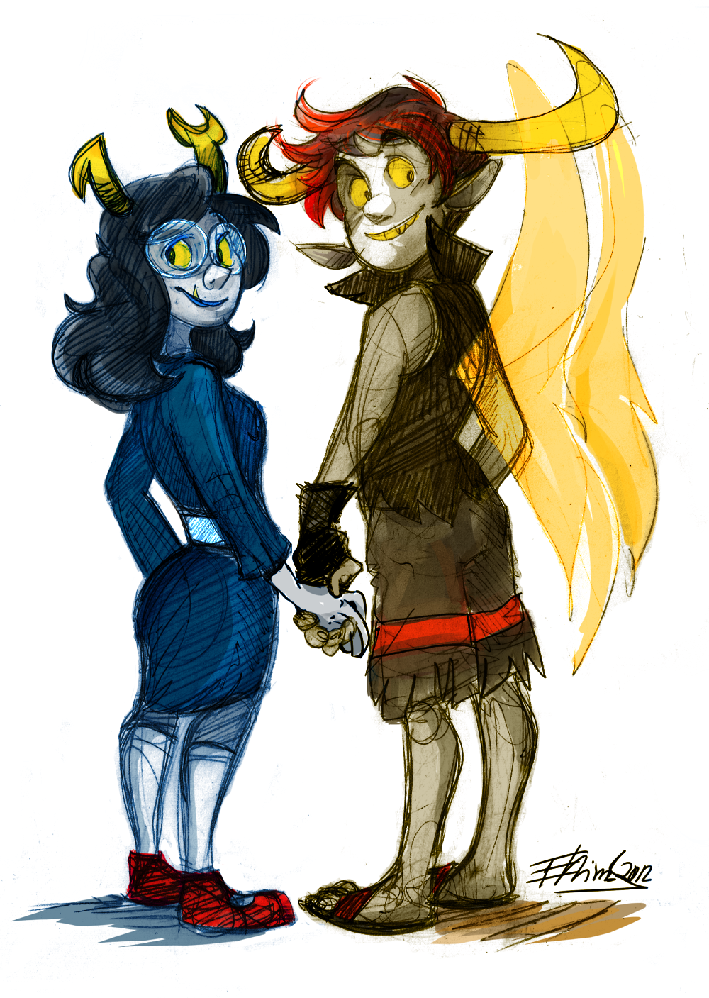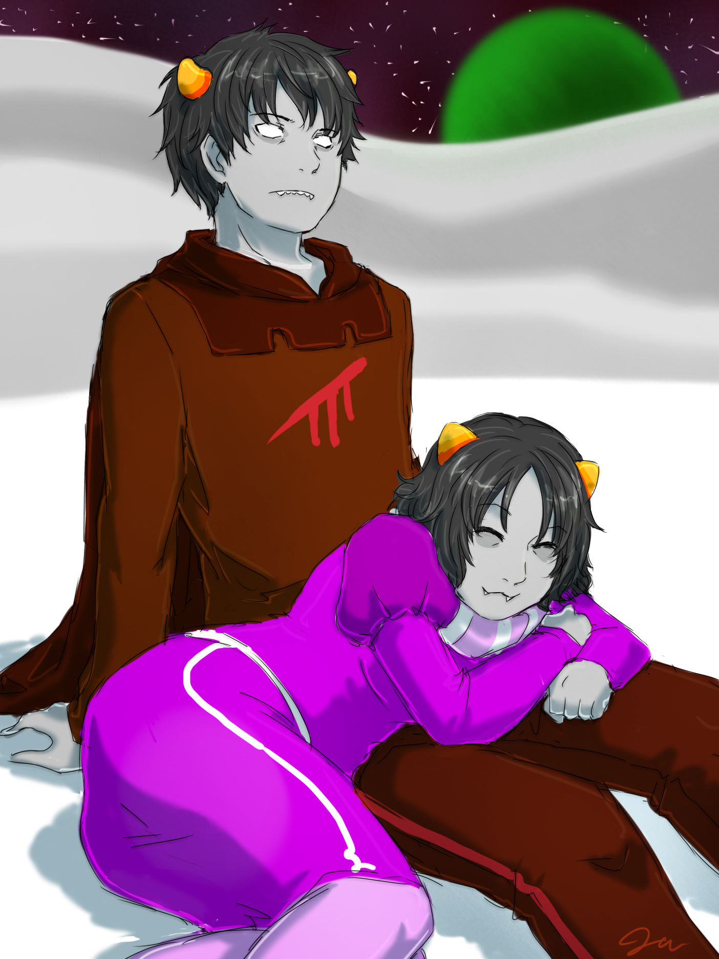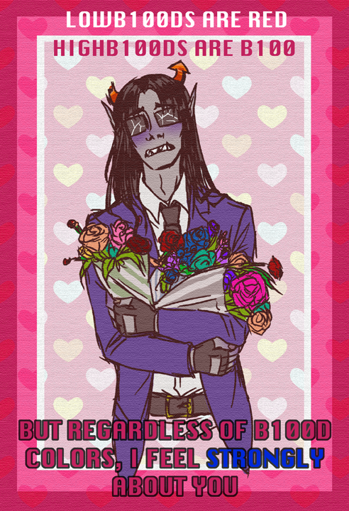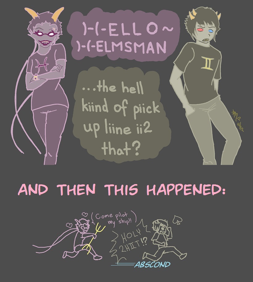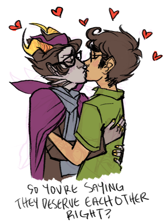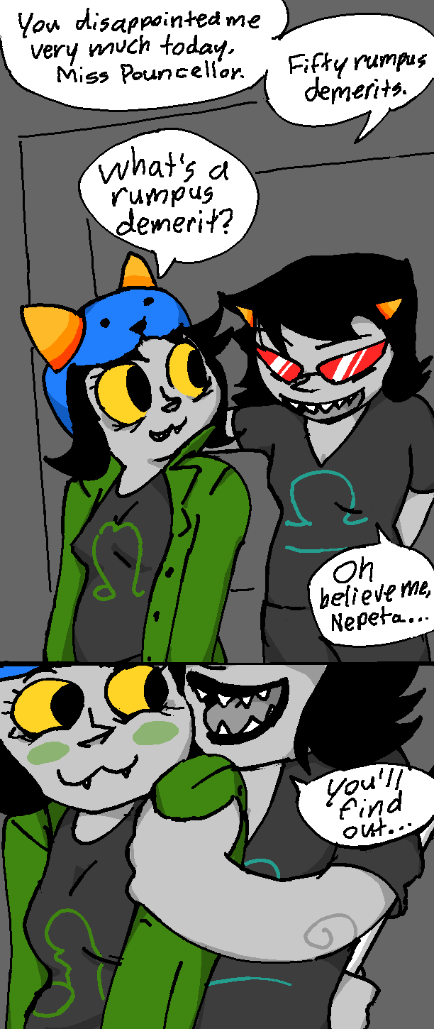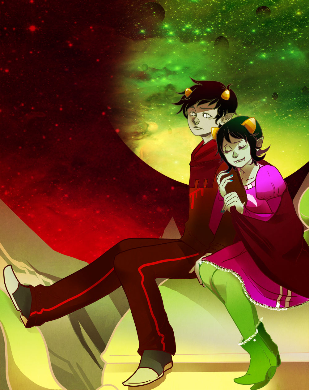 The reason why Karkat is getting so self-destructively retarded when it comes to Terezi is because he's having feelings of a 'beyond quadrent' nature for her like the Signless did for the Disciple and he can't make them mesh with his 'mastery' of the theory of troll romance, When he brought it up to himself in the timeloop convo he accused himself of being one of those pathetic joke characters in thier troll romcoms just because he wants to have a 'romantic' connection with one person, all of him and all of her, closer to the Human idea of 'true' love.