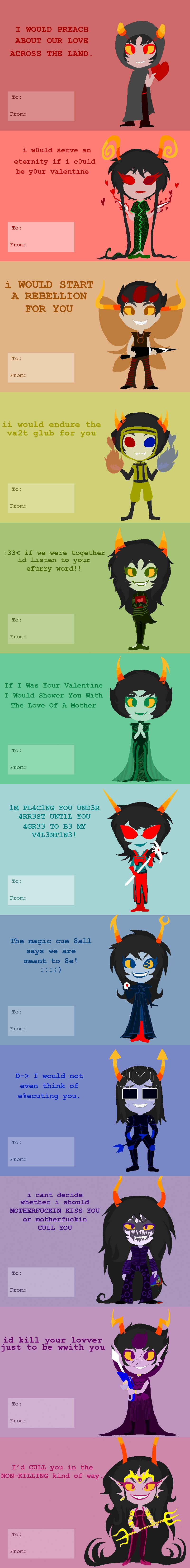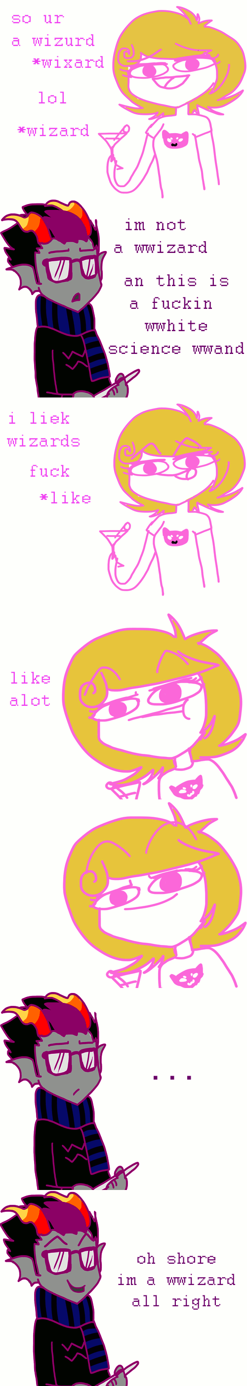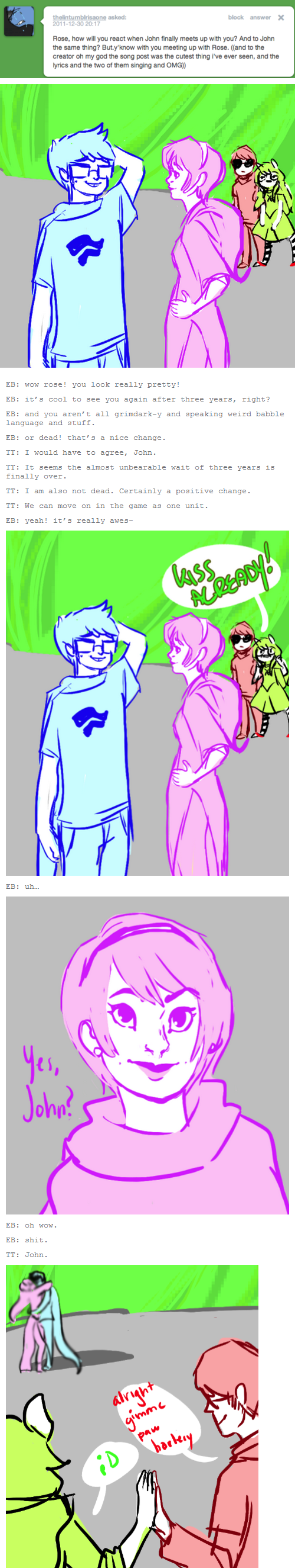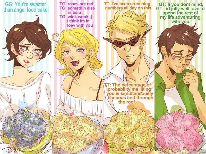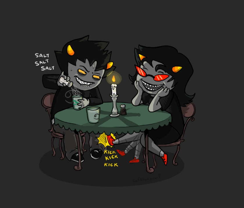 The reason why Karkat is getting so self-destructively retarded when it comes to Terezi is because he's having feelings of a 'beyond quadrent' nature for her like the Signless did for the Disciple and he can't make them mesh with his 'mastery' of the theory of troll romance, When he brought it up to himself in the timeloop convo he accused himself of being one of those pathetic joke characters in thier troll romcoms just because he wants to have a 'romantic' connection with one person, all of him and all of her, closer to the Human idea of 'true' love.