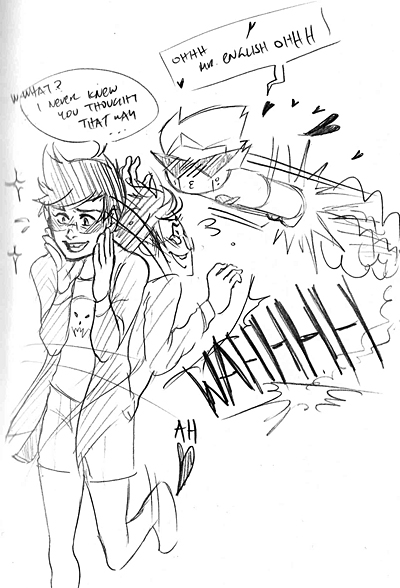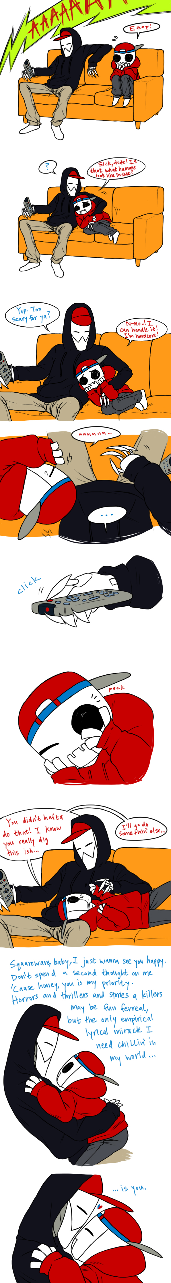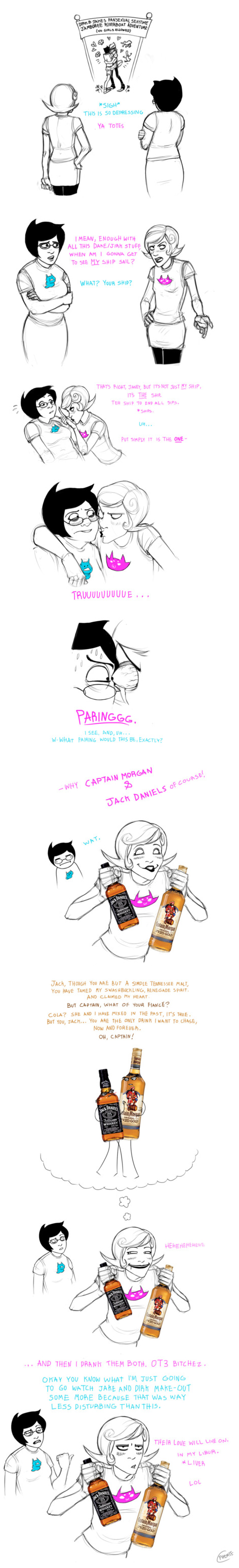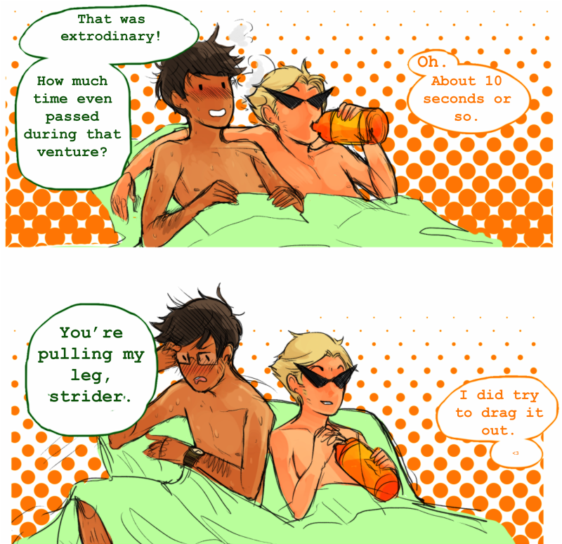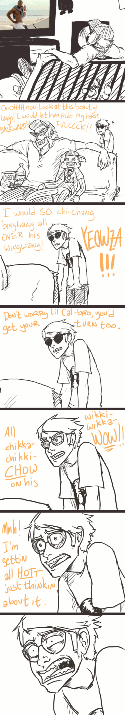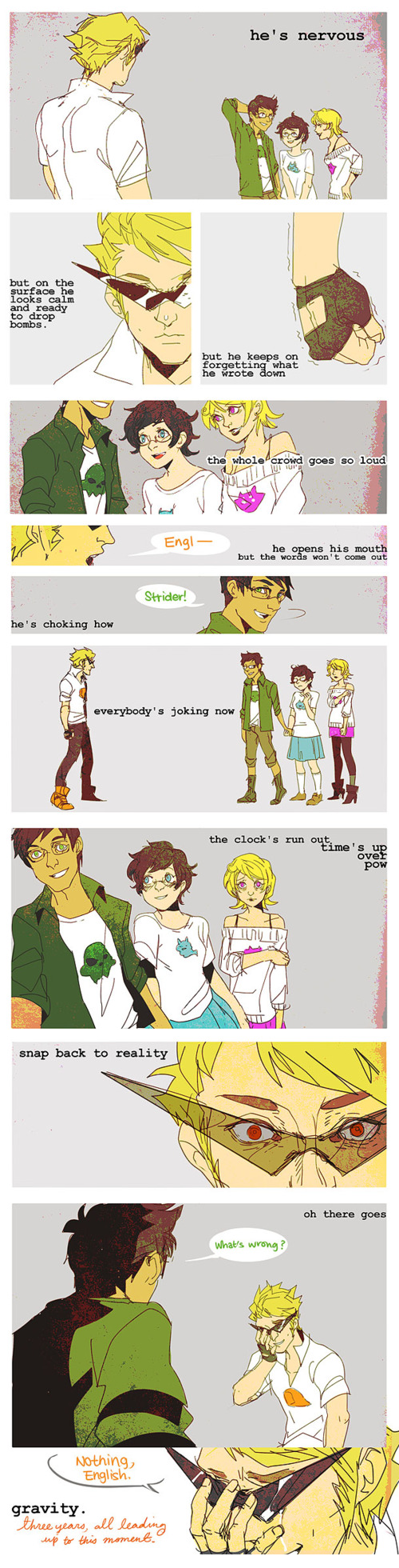 The reason why Karkat is getting so self-destructively retarded when it comes to Terezi is because he's having feelings of a 'beyond quadrent' nature for her like the Signless did for the Disciple and he can't make them mesh with his 'mastery' of the theory of troll romance, When he brought it up to himself in the timeloop convo he accused himself of being one of those pathetic joke characters in thier troll romcoms just because he wants to have a 'romantic' connection with one person, all of him and all of her, closer to the Human idea of 'true' love.