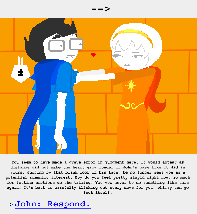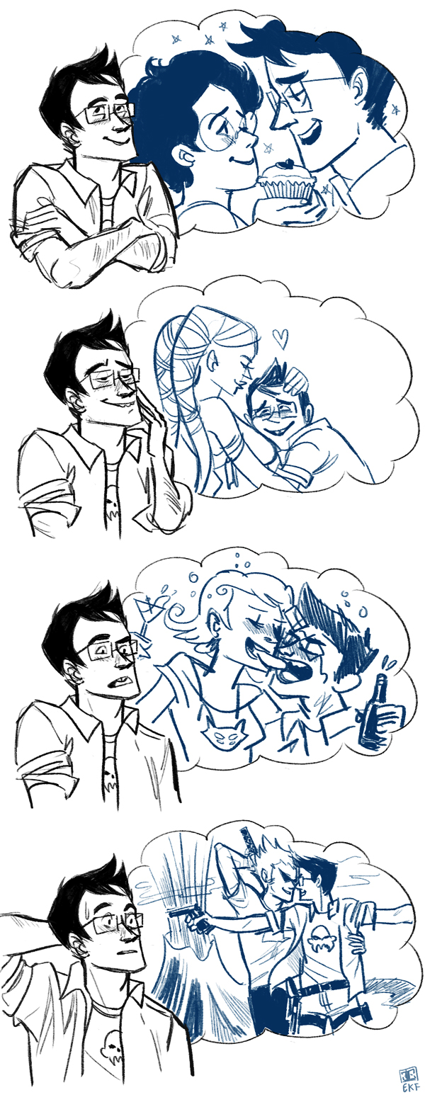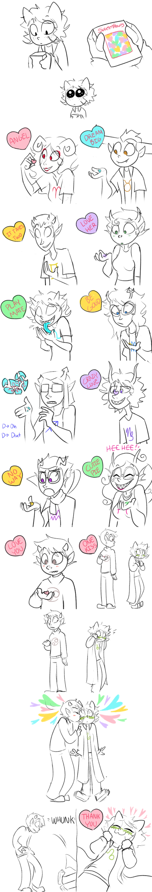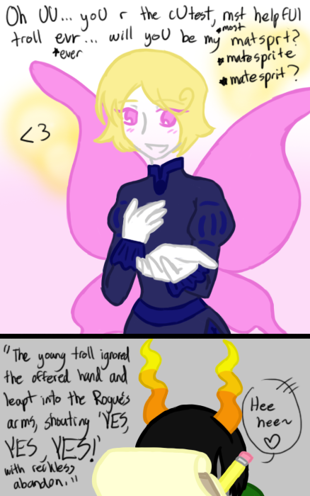He's trying harder and harder to justify the way he feels in Troll terms and concepts to prove it isn't that, which means he's looking to more out there theories like the trashy romance novel, and the way he's going about it is quite possibly as Dave said, neither healthy/normal in either Troll or Human perceptions.