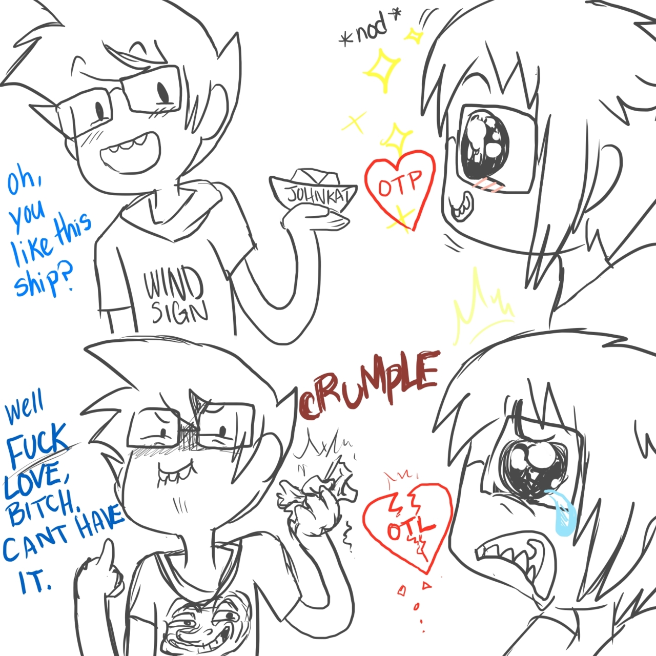 In all seriousness, what John's saying about the emotional impact of that one day is reasonable. I find it sad, not because he doesn't still carry a torch for Vriska after one day, but because he took away such a negative/dismissive opinion of her after what meeting him did for her.