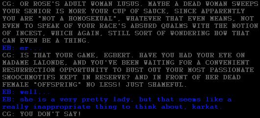 Dave and Rose and the trolls (and WV) are obviously all off having their own misadventures, all running around discovering secrets of the game, getting to know each other better, and even adventuring off in the dreambubbles.