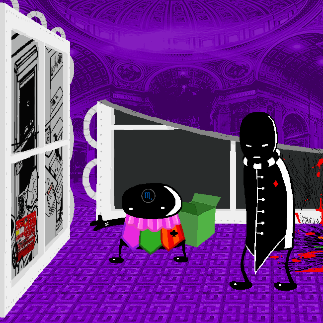 Also, I like how the cuts Dirk made on Aranea made the nose and mouth of a face, with part of the blue design on her shirt forming the eyes.