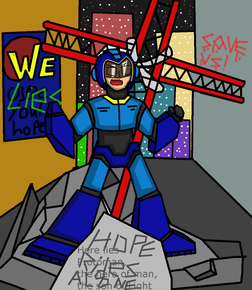 Sentience unfortunately comes with it, and while a lethal enforcer, and arrogant in his superiority, he comes to realize how alone he is as his uniqueness also isolates him from the cold, thoughtless automatons that populate Wily's army. (Above the Line)