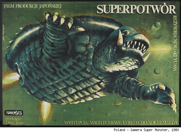 Super Monster is comprised almost entirely of stock footage from other Gamera films. It also contains a bunch of pop culture references in the new footage they filmed, like an exploding Godzilla billboard, and apparently some Battleship Yamato footage. Mostly it's because Gamera movies before 1995 were kind of stupid, I guess.