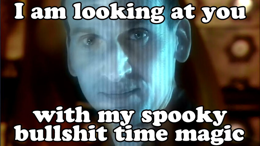Not to mention, how did the TARDIS tow the Earth out? I'm not one to fuss over physical possibility too much but wherever the crucible was, it was not part of the same physical universe as the Earth is. You can't just fly there. That's why they had to do all sorts of bad-technobabble bullshit to give the Doctor a phone call.