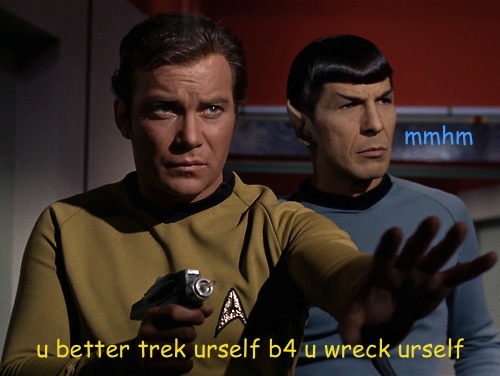 I never watched any of Trek growing up. Not before the 2009 movie. I always thought Trek was for supernerds, and that I would never ever stoop to that level. But after watching both reboot movies and liking them a lot, I have decided: I will watch every TV show and movie of Star Trek from TOS up through Enterprise. It'll be a long journey, hopefully not 5 years.