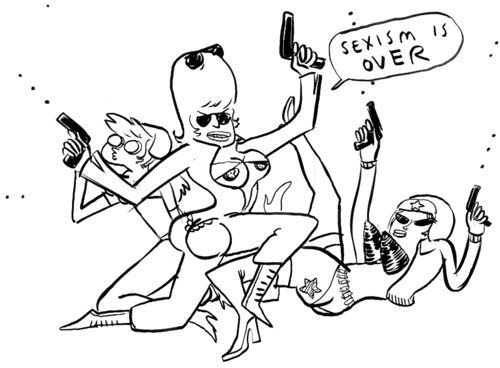 Also I've never heard a single feminist use the term "womyn", only bullshit "all cool characters need to be male and girls can't exist outside showing their tits" male chauvanists do that.