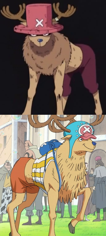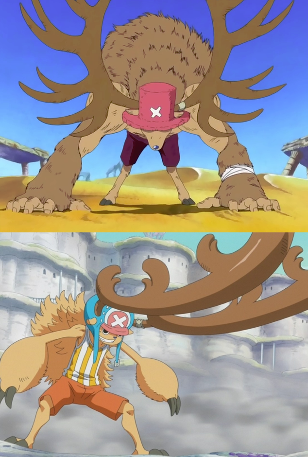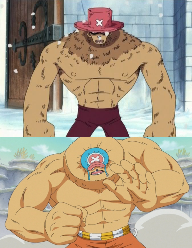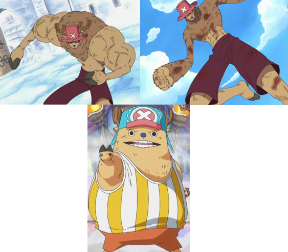 Haha, Luffy accidently swallows a girl who then grows into a giant inside him causing his rubber body to stretch to the size of a giant.