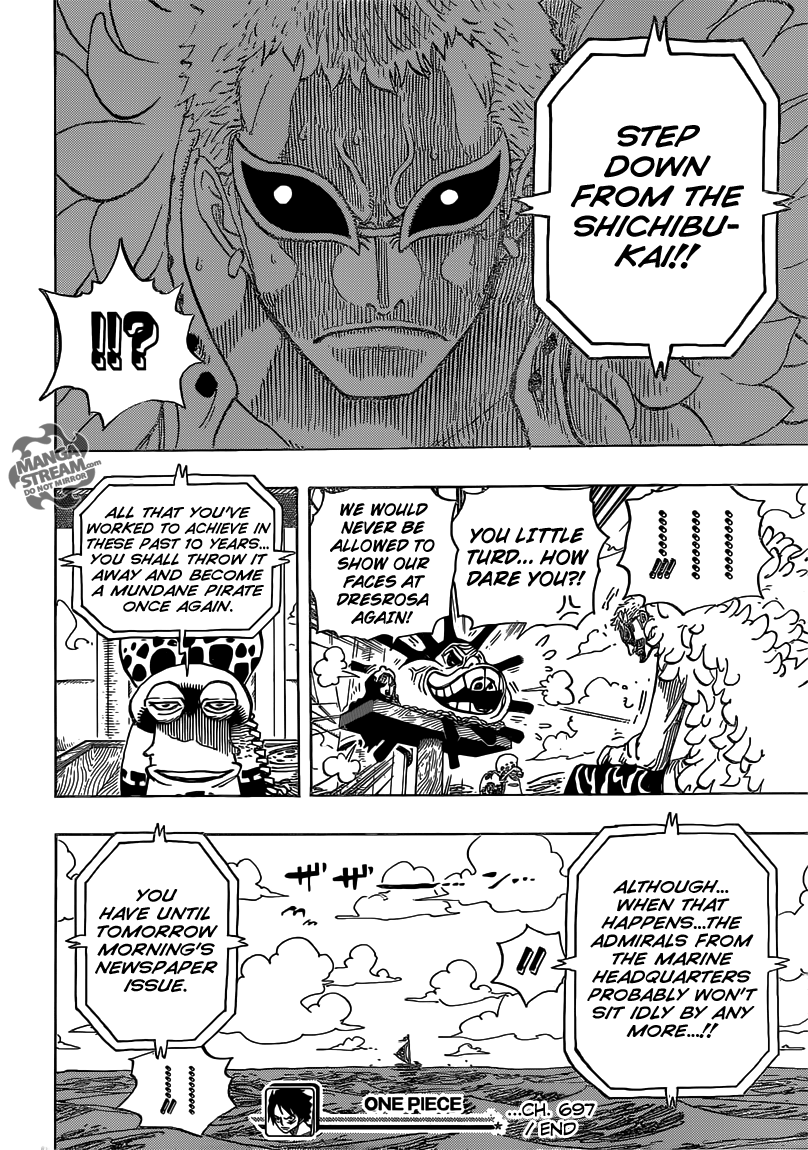 Also tbh, I don't mind a bit of feel-good. This is the arc where we got Donflamingo's fucked up crew, child experiment subjects being turned into raging druggies, and the arc villain testing Zyklon-B on his own henchmen while the world watches. I mean, not even Josef Mengele livestreamed his experiments.