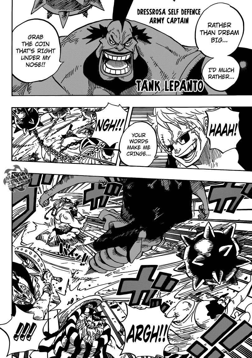 That is until the current story line which since it's a repercussion story I am anticipating and hoping for a big Luffy moment, maybe a Zoro or for once in the series a Sanji moment, and on a long shot I kinda have hopes for Rebecca being a character who does cool stuff though I am in no way advocating her for a Straw Hat.