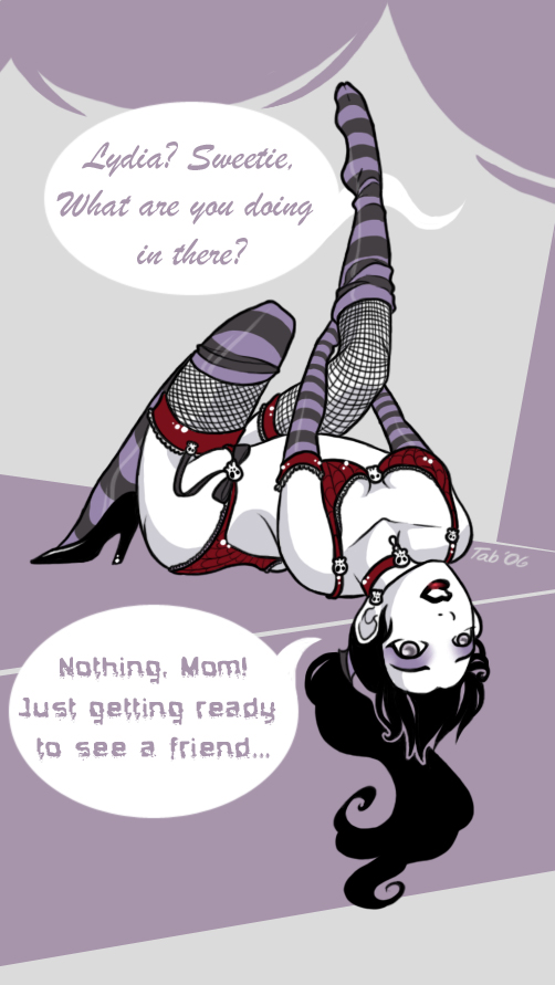 Um... believe it or not I have like twelve more Lydia pic I have drawn that are like...2-3 year years old. I have never just built up the nerve to finally ink and illustrate them for you... I have quite a bit of good ones too from nice perspectives, and... I have ones that are just silly and absurd. I'll try to get another one up here soon. I have create a Tumblr, but I haven't edited it to the way I wanted it. If I did more Lydia pics, would you follow it on my Tumblr? Also, I have considered doing some Monster High stuff... I firmly believe that there needs to be more of that shit too. I mean the girls are practically tailored for it.