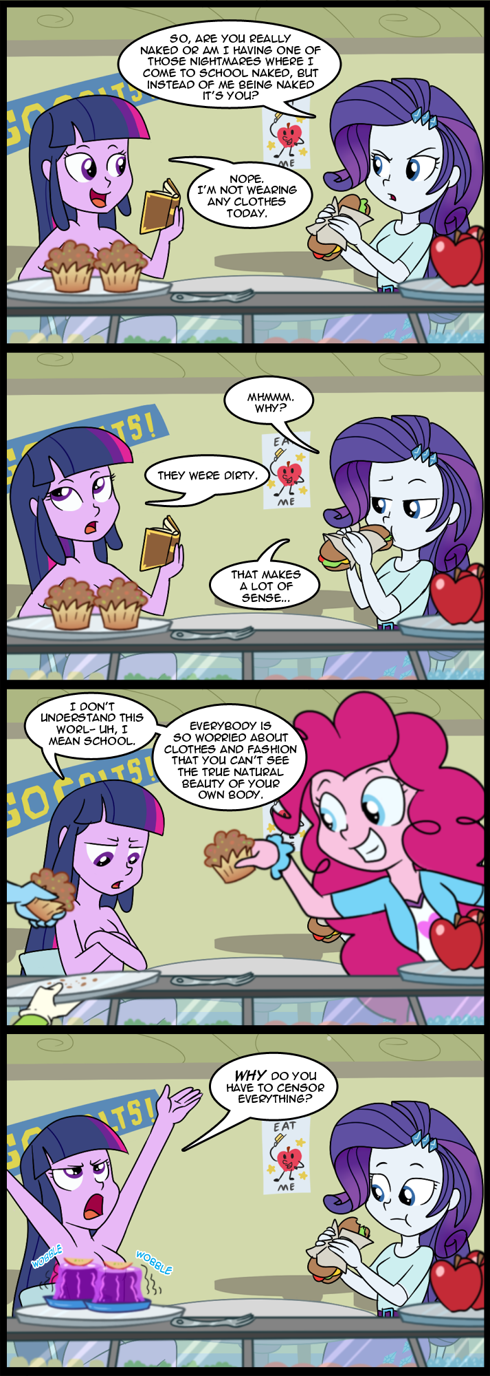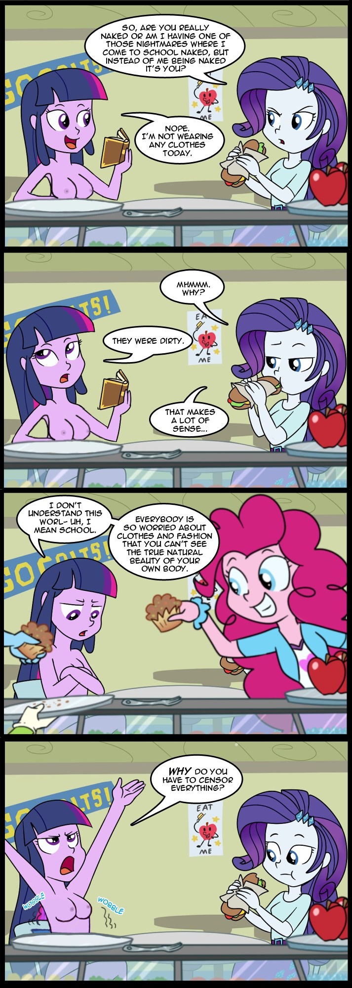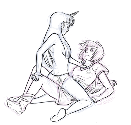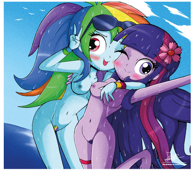 Looks like Twilight talk Rainbow Dash into join her at the nudist beach.Thats my story and I am sticking to it.
