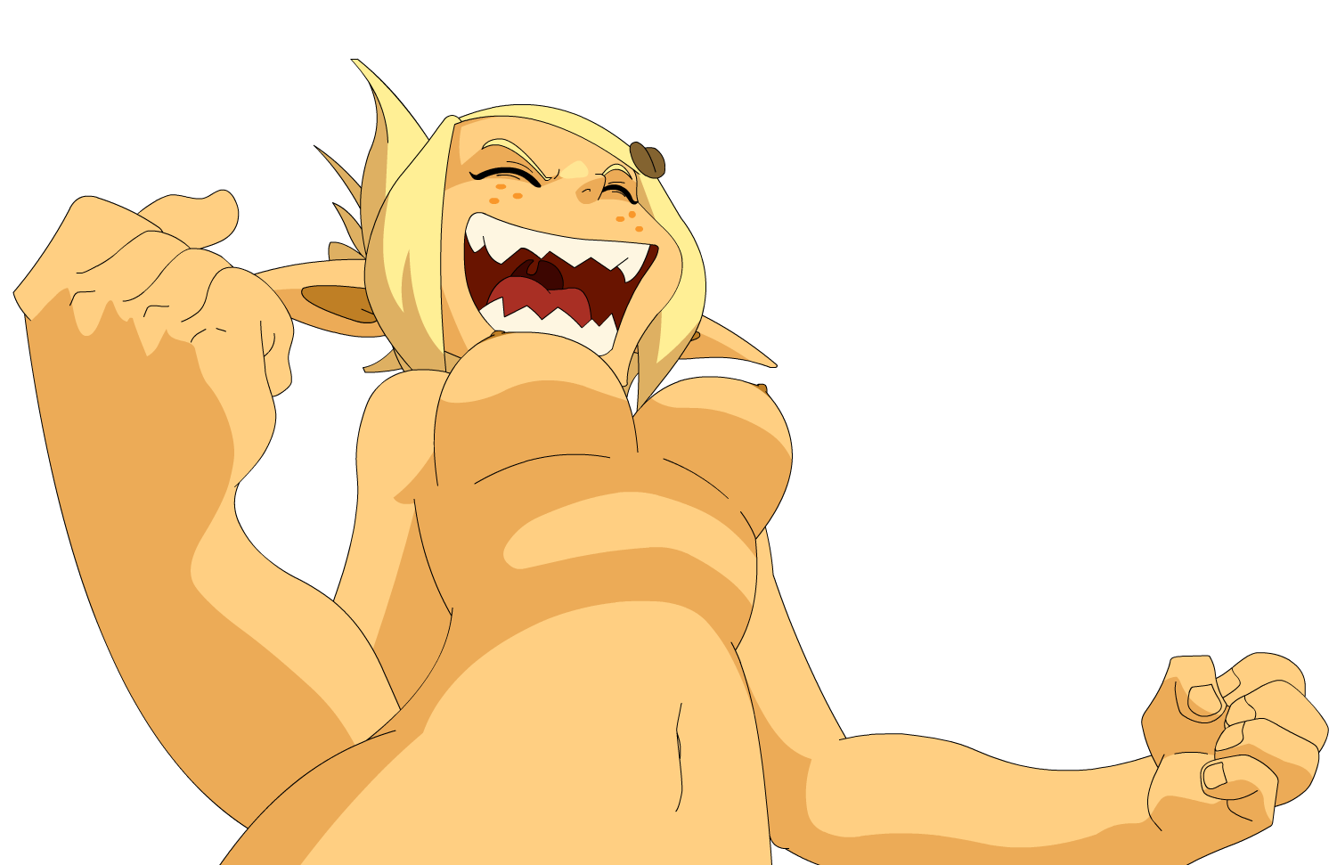 I will have her body move up and down and have her arms mostly stationary except for a sharp push up and down to show that she's being restrained as the technovore is pushing into her.