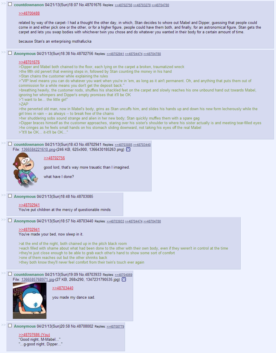 someone a few generals back posted a pic of a camgirl that was the spitting image of an older Mabel. I did a spit take it was so dead on.