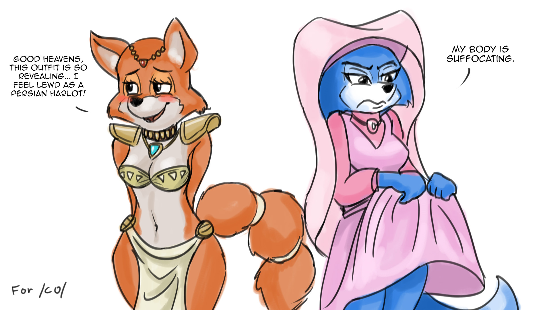 >"Oh good heavens this outfit is so revealing... I feel as lewd as a persian harlot" she sais nervously, her hands behind her back shifting her weight causing her body to turn and gyrate. >"You mean that?" You respond; drawing her close and looking into her eyes as your hands against her lower back and head, pressing her into you. >Both of your breaths become labored as she mearly whimpers and tries to look away, You grind into her and attempt to press your lips into something that could be considered a deep lustful kiss as your other hand traces her hips then her rear before lifting her leg and bending it around you. >Your heart races as you begin panting gazing at each other through lidded eyes >She leans in and rests her head on your shoulders, whispering in your ear: >"Take me like a whore..." >Without waiting for reply, you feel a hand swiftly undoing the buttons on your trousers. >Your manhood springs free in the chilly autumn day, but quickly find worm embrace in the hands of your soft velvety lover >She strokes you a few times to enhance your stiffness before resting her hands on your shoulders. >You gaze into each others eyes as you feel her instinctively buck up against you, her wetness kissing your tip ever so often. >Unable to resist any further you plunge into your vulpine lover, muffling her cry with a deep "kiss". >Whimpering, her muffled screams finally cease and you begin thrusting into her; her leg still wrapped around you. >She looks you dead in the eye, her hips now bucking with yours, her mouth open and panting. >She draws you close and you feel her heart beat against yours; steady and quick like a wardrum. >You move your hand up her thigh to her butt before reaching the base of the tail, as you yank it you slam into her as deep as you can, muffling her screams yet again with another drawn out kiss. >Quickly her legs begin trembling as her petals quiver; her grip on your shaft tightens and contracts. >With your other hand you lift up her other thigh, her leg wrapping itself around you, causing you to bear the brunt of her weight. >You run to the nearest wall and pin her to it for leverage, causing her to moan as her back hits the chilled stone. >You continue your fevered assault, your hands cupping her firm butt as the sun begins to set casting shadows on your lovemaking. >You feel her soft tail coil around your leg. >You slap against her, feeling your stomach tighten and your back arch, your hands move to her hips. >"Give it all to your little persian harlot." she coos. >You pull down and thrust up as hard as you can letting out a primal yell as you empty yourself into her. Wave after wave gushing deep inside your royal lover. >You gaze into each others eyes as she caresses your face and your lips intertwine once more, your tongues snaking around each other before she pulls back and dismounts, the sound of wetness dripping on stone the only sound you can hear. >She places your hands on your shoulders as she shudders trying to regain her composure. >She breaths deep and kisses you one last time before stepping back and adjusting her outfits loin cloth. >"Heh... Persia..." she whispers shyly. You could almost swear she were blushing.